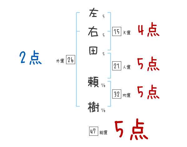 地運![]() | 左右田頼樹さんの地運は32画の5つ星!柔軟性があり成功する。チャンスが多く金運が良い。 個性を表す基礎的な運勢です。性格形成や対人関係、行動力など家庭環境に影響されます。主に誕生してから20歳くらいまでの若年期の運勢を表します。 |