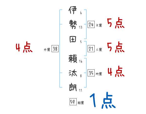 外運![]() | 伊勢田頼汰朗さんの外運は38画の4つ星!温厚な性格で技術的な才能を発揮する。職人的な仕事に向いている。 生活面を象徴する運勢です。外部から受ける影響力を表し、結婚運、家庭運や職場、環境への順応性を表します。 |
