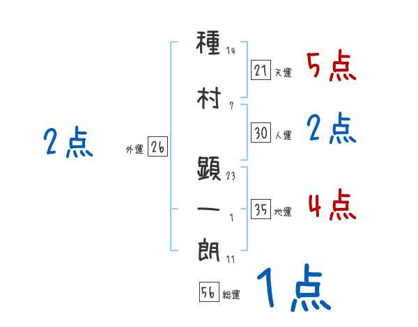 天運![]() | 種村顕一朗さんの天運は21画の5つ星!統率力がある。独立し成功する。名誉を手に入れる。 家系が持つ宿命的な運勢を表します。祖先から受け継いだ苗字ですので自分の力が及びません。家柄を象徴します。 |