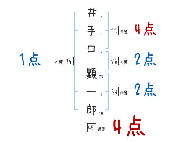 天運![]() | 井手口顕一郎さんの天運は11画の4つ星!着実に富や地位を得る幸運な人生。 家系が持つ宿命的な運勢を表します。祖先から受け継いだ苗字ですので自分の力が及びません。家柄を象徴します。 |