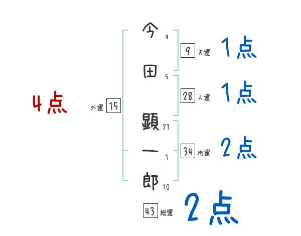 外運![]() | 今田顕一郎さんの外運は15画の4つ星!人徳があり出世する。順調に物事を進め円満な人生。 生活面を象徴する運勢です。外部から受ける影響力を表し、結婚運、家庭運や職場、環境への順応性を表します。 |