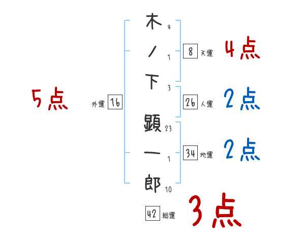 天運![]() | 木ノ下顕一郎さんの天運は8画の4つ星!勤勉家。根気強く努力し成功する。忍耐力がある。 家系が持つ宿命的な運勢を表します。祖先から受け継いだ苗字ですので自分の力が及びません。家柄を象徴します。 |
