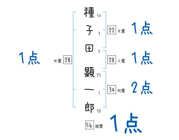 外運![]() | 種子田顕一郎さんの外運は28画の1つ星!家庭環境に注意。スポーツで活躍できる能力があるかも。 生活面を象徴する運勢です。外部から受ける影響力を表し、結婚運、家庭運や職場、環境への順応性を表します。 |