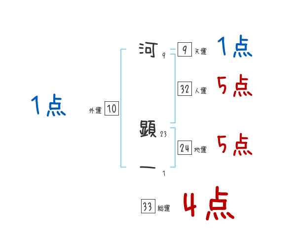 河顕一さんの画数の鑑定結果