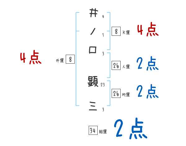総運![]() | 井ノ口顕三さんの総運は34画の2つ星!独創性に優れるが、自尊心が強く災難に注意しましょう。 あなたの人生を表す1番重要な運勢です。生涯を通じて影響する総合運となり、主に50歳以降の晩年期に影響を及ぼします。 |