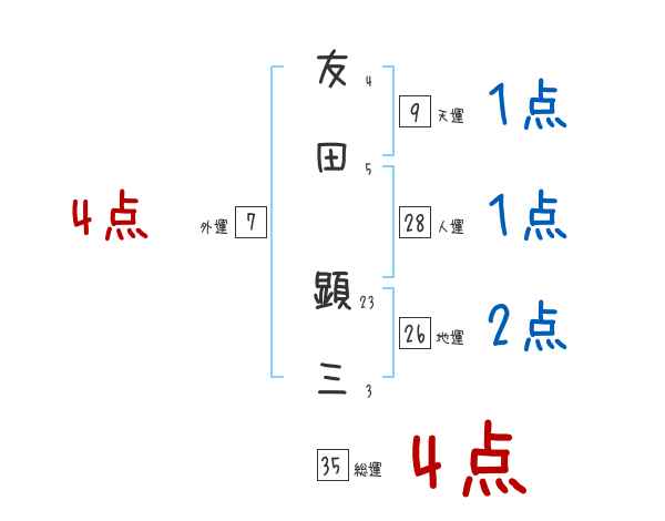 友田顕三さんの画数の鑑定結果