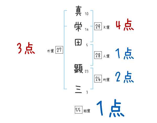 真栄田顕三さんの画数の鑑定結果
