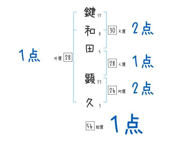鍵和田顕久さんの画数の鑑定結果