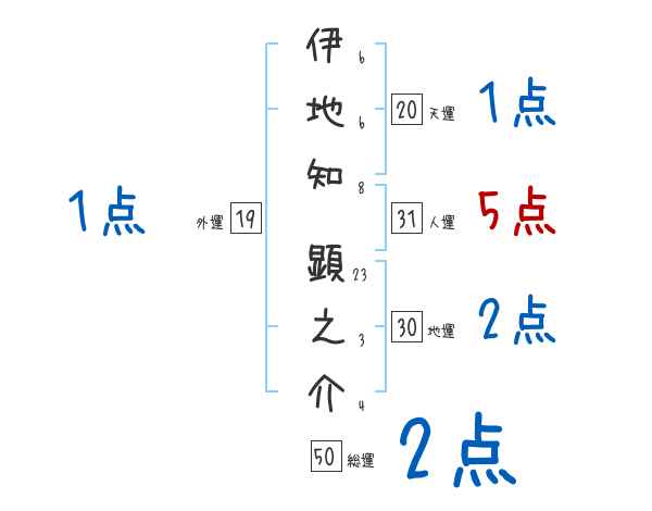 伊地知顕之介さんの画数の鑑定結果