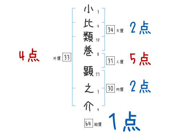 天運![]() | 小比類巻顕之介さんの天運は34画の2つ星!独創性に優れるが、自尊心が強く災難に注意しましょう。 家系が持つ宿命的な運勢を表します。祖先から受け継いだ苗字ですので自分の力が及びません。家柄を象徴します。 |