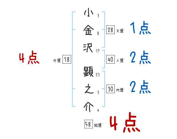 小金沢顕之介さんの画数の鑑定結果