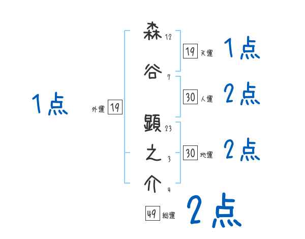 天運![]() | 森谷顕之介さんの天運は19画の1つ星!優れた才能を持ちますが、協調性が足りないことも。周りの人と協力する事を意識しましょう。 家系が持つ宿命的な運勢を表します。祖先から受け継いだ苗字ですので自分の力が及びません。家柄を象徴します。 |