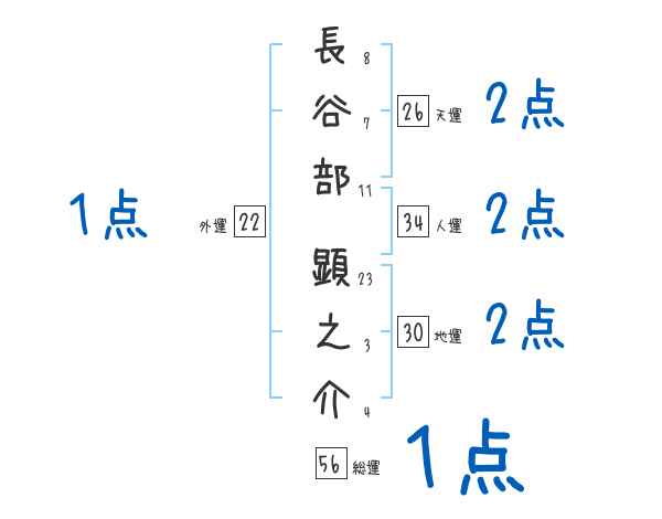 外運![]() | 長谷部顕之介さんの外運は22画の1つ星!努力することが苦手ないっぽう手先が器用。芸術性にも優れる。 生活面を象徴する運勢です。外部から受ける影響力を表し、結婚運、家庭運や職場、環境への順応性を表します。 |