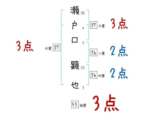 瀬戸口顕也さんの画数の鑑定結果