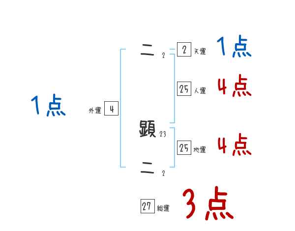人運![]() | 二顕二さんの人運は25画の4つ星!個性があり才能があふれる。強運の持ち主で発展する。 性格や才能などを表す2番目に重要な運勢です。人間関係や協調性、社会的な成功に影響します。主に20歳から50歳ぐらいまでの中年期の運勢を表します。 |
