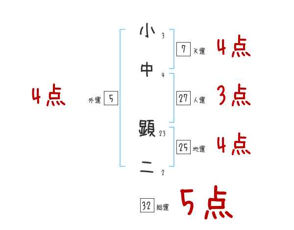 小中顕二さんの画数の鑑定結果