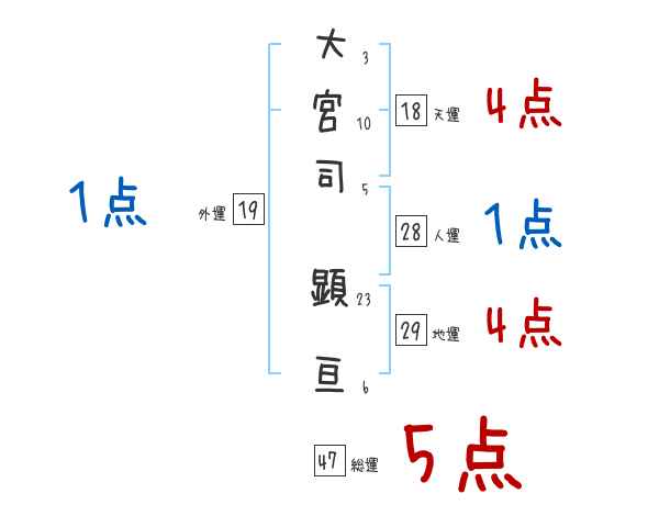 外運![]() | 大宮司顕亘さんの外運は19画の1つ星!優れた才能を持ちますが、協調性が足りないことも。周りの人と協力する事を意識しましょう。 生活面を象徴する運勢です。外部から受ける影響力を表し、結婚運、家庭運や職場、環境への順応性を表します。 |