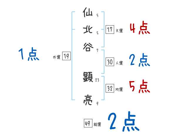 総運![]() | 仙北谷顕亮さんの総運は49画の2つ星!不安定な性格で明暗がある人生。周りの人には支援されやすい。 あなたの人生を表す1番重要な運勢です。生涯を通じて影響する総合運となり、主に50歳以降の晩年期に影響を及ぼします。 |