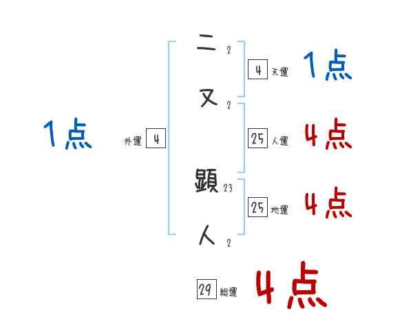天運![]() | 二又顕人さんの天運は4画の1つ星!感情が不安定で苦労するかも。周囲との協調を心掛けましょう。 家系が持つ宿命的な運勢を表します。祖先から受け継いだ苗字ですので自分の力が及びません。家柄を象徴します。 |