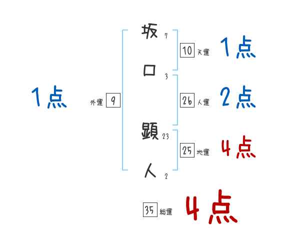 坂口顕人さんの画数の鑑定結果