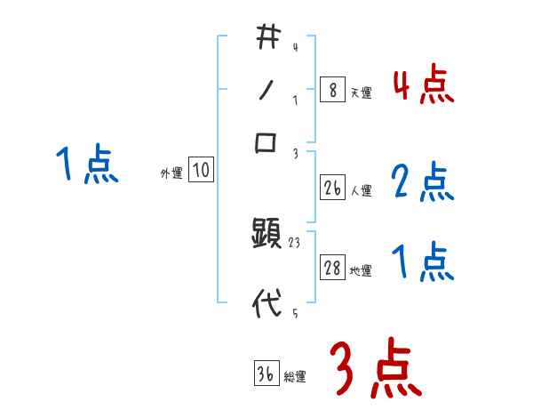 外運![]() | 井ノ口顕代さんの外運は10画の1つ星!不安を感じやすい傾向。ストレスを抱えないように注意しましょう。 生活面を象徴する運勢です。外部から受ける影響力を表し、結婚運、家庭運や職場、環境への順応性を表します。 |