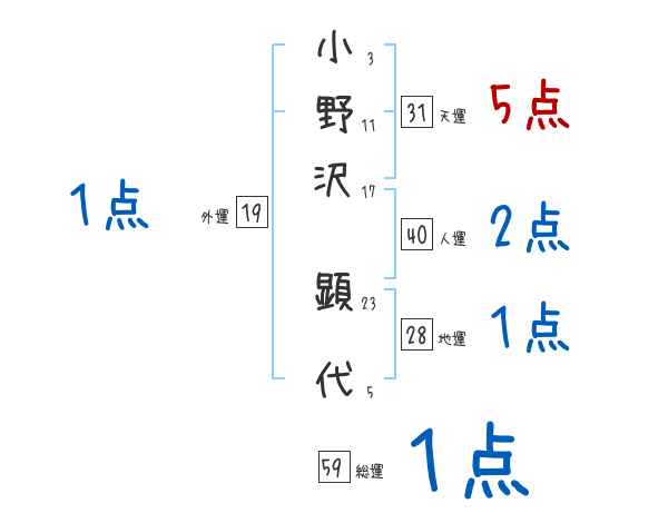 小野沢顕代さんの画数の鑑定結果