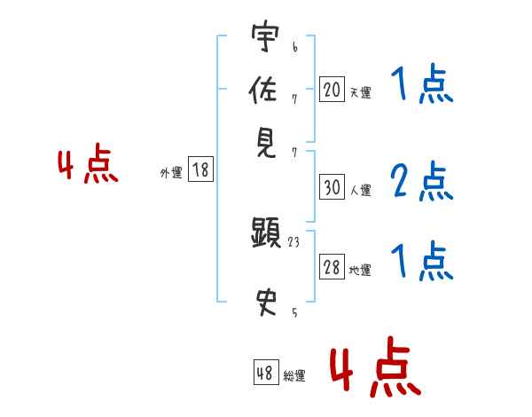 総運![]() | 宇佐見顕史さんの総運は48画の4つ星!賢明な性格で人望が厚い。指導力があり多くの人に尊敬される。 あなたの人生を表す1番重要な運勢です。生涯を通じて影響する総合運となり、主に50歳以降の晩年期に影響を及ぼします。 |