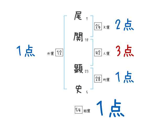 天運![]() | 尾関顕史さんの天運は26画の2つ星!波瀾万丈かも。信頼できる人を大事にしましょう。 家系が持つ宿命的な運勢を表します。祖先から受け継いだ苗字ですので自分の力が及びません。家柄を象徴します。 |