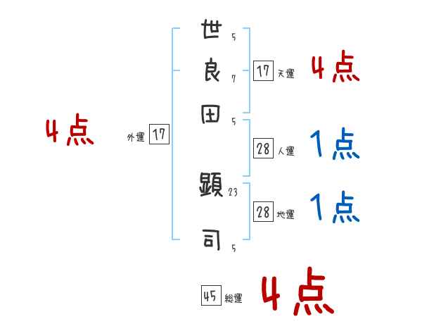 世良田顕司さんの画数の鑑定結果