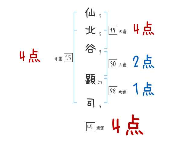 仙北谷顕司さんの画数の鑑定結果