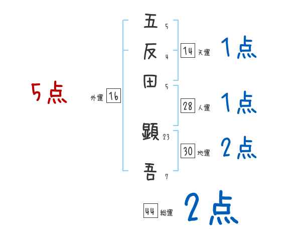 五反田顕吾さんの画数の鑑定結果