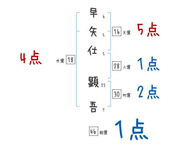 天運![]() | 早矢仕顕吾さんの天運は16画の5つ星!人望が厚く大きく発展する。逆転成功が見える。 家系が持つ宿命的な運勢を表します。祖先から受け継いだ苗字ですので自分の力が及びません。家柄を象徴します。 |