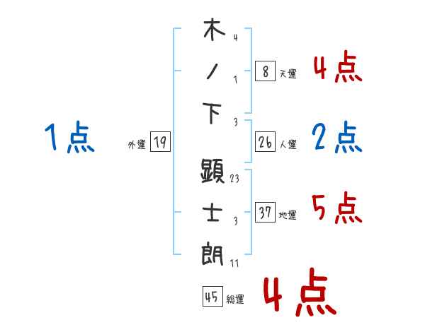木ノ下顕士朗さんの画数の鑑定結果