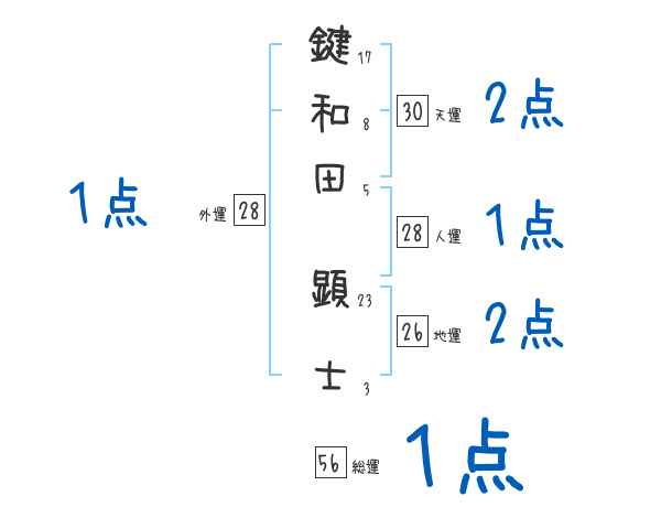 天運![]() | 鍵和田顕士さんの天運は30画の2つ星!浮き沈みの激しさに注意しましょう。 家系が持つ宿命的な運勢を表します。祖先から受け継いだ苗字ですので自分の力が及びません。家柄を象徴します。 |