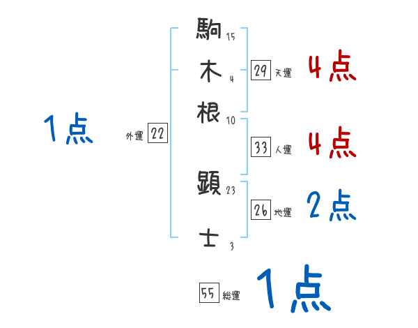 駒木根顕士さんの画数の鑑定結果