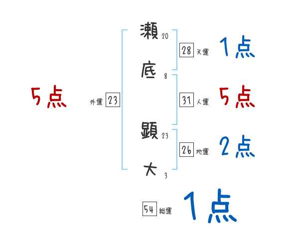 瀬底顕大さんの画数の鑑定結果