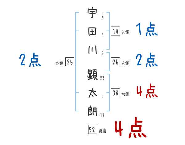宇田川顕太朗さんの画数の鑑定結果