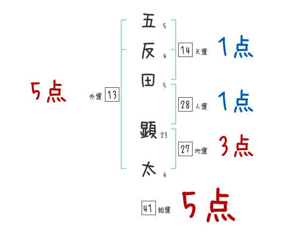 五反田顕太さんの画数の鑑定結果