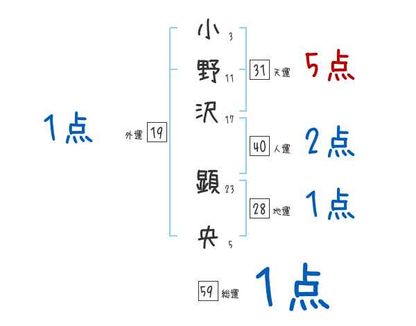 小野沢顕央さんの画数の鑑定結果