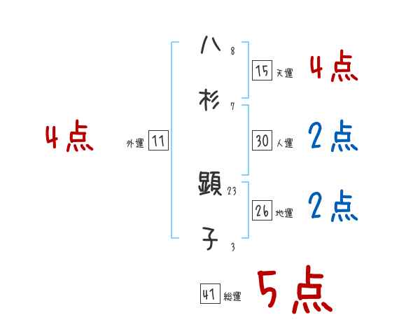 八杉顕子さんの画数の鑑定結果