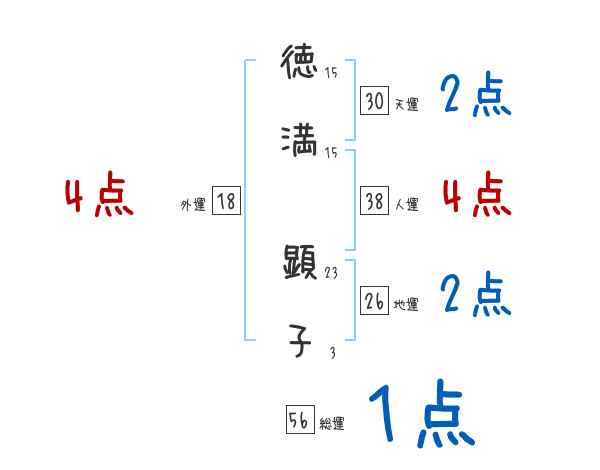 天運![]() | 徳満顕子さんの天運は30画の2つ星!浮き沈みの激しさに注意しましょう。 家系が持つ宿命的な運勢を表します。祖先から受け継いだ苗字ですので自分の力が及びません。家柄を象徴します。 |