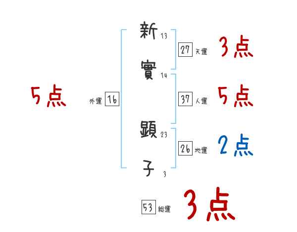 新實顕子さんの画数の鑑定結果