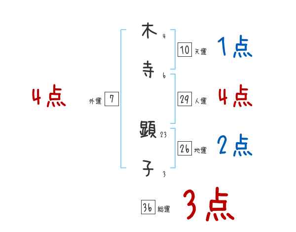 天運![]() | 木寺顕子さんの天運は10画の1つ星!不安を感じやすい傾向。ストレスを抱えないように注意しましょう。 家系が持つ宿命的な運勢を表します。祖先から受け継いだ苗字ですので自分の力が及びません。家柄を象徴します。 |