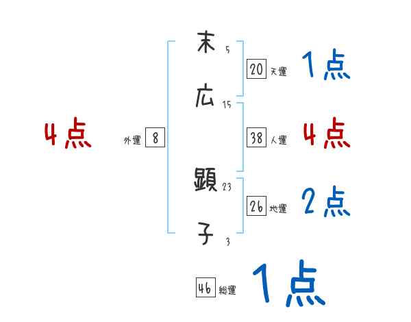 末広顕子さんの画数の鑑定結果