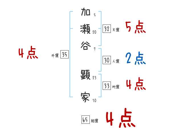 天運![]() | 加瀬谷顕家さんの天運は32画の5つ星!柔軟性があり成功する。チャンスが多く金運が良い。 家系が持つ宿命的な運勢を表します。祖先から受け継いだ苗字ですので自分の力が及びません。家柄を象徴します。 |