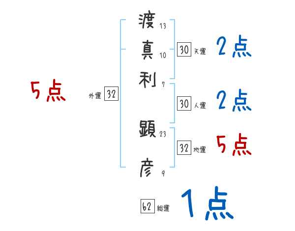 渡真利顕彦さんの画数の鑑定結果