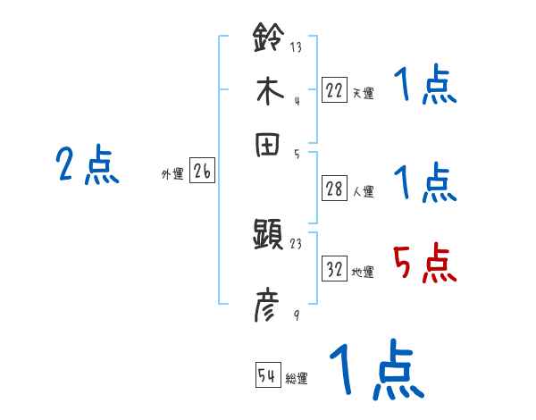 地運![]() | 鈴木田顕彦さんの地運は32画の5つ星!柔軟性があり成功する。チャンスが多く金運が良い。 個性を表す基礎的な運勢です。性格形成や対人関係、行動力など家庭環境に影響されます。主に誕生してから20歳くらいまでの若年期の運勢を表します。 |