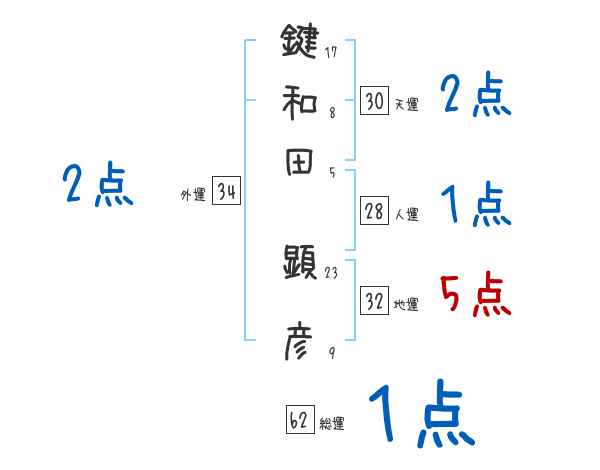 鍵和田顕彦さんの画数の鑑定結果