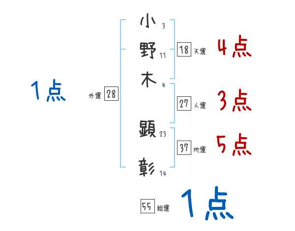 小野木顕彰さんの画数の鑑定結果
