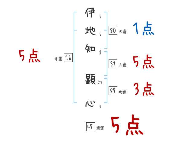 総運![]() | 伊地知顕心さんの総運は47画の5つ星!実力が開花し発展する円満な人生。財に恵まれる。 あなたの人生を表す1番重要な運勢です。生涯を通じて影響する総合運となり、主に50歳以降の晩年期に影響を及ぼします。 |